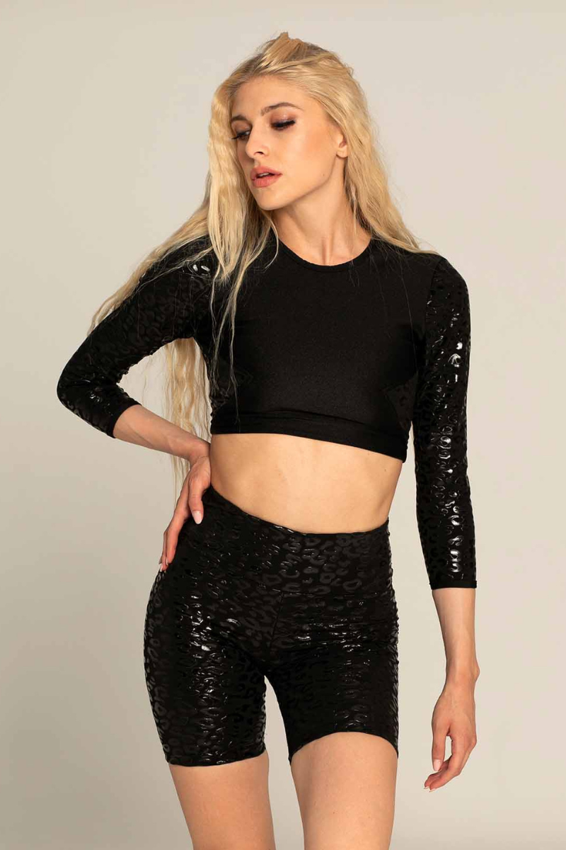 Paradise Chick Superhero Ultra Grip Crop Top - Black Leopard