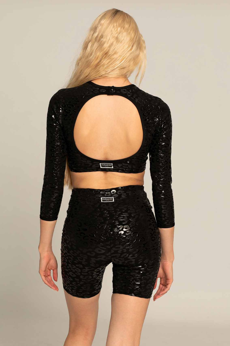 • Durable | Long Sleeve | Leopard Print | Crop Top | High Neck Top | Open Back Design