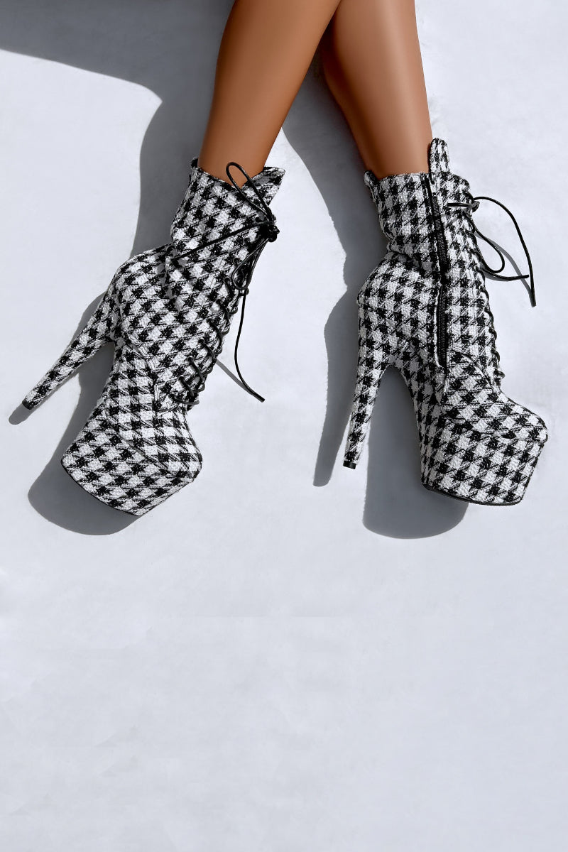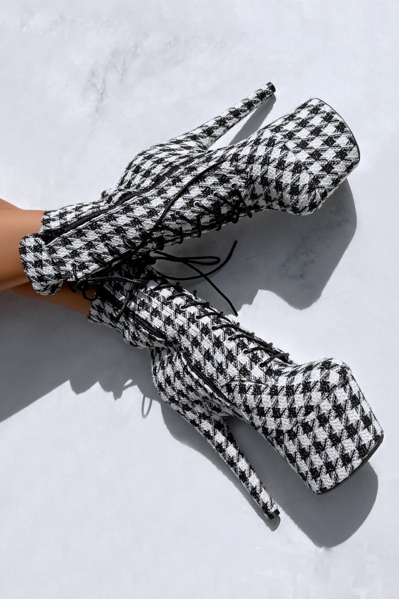 Hella Heels Houndstooth 7inch Boots - Black/White
