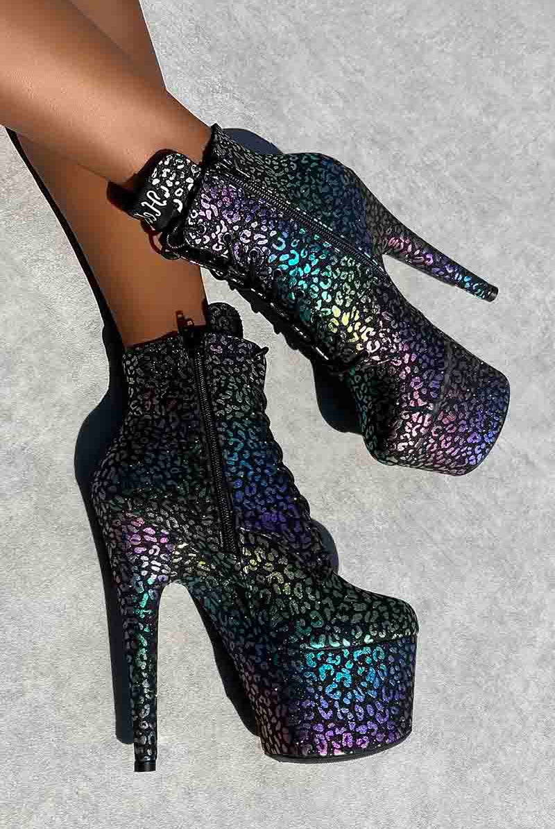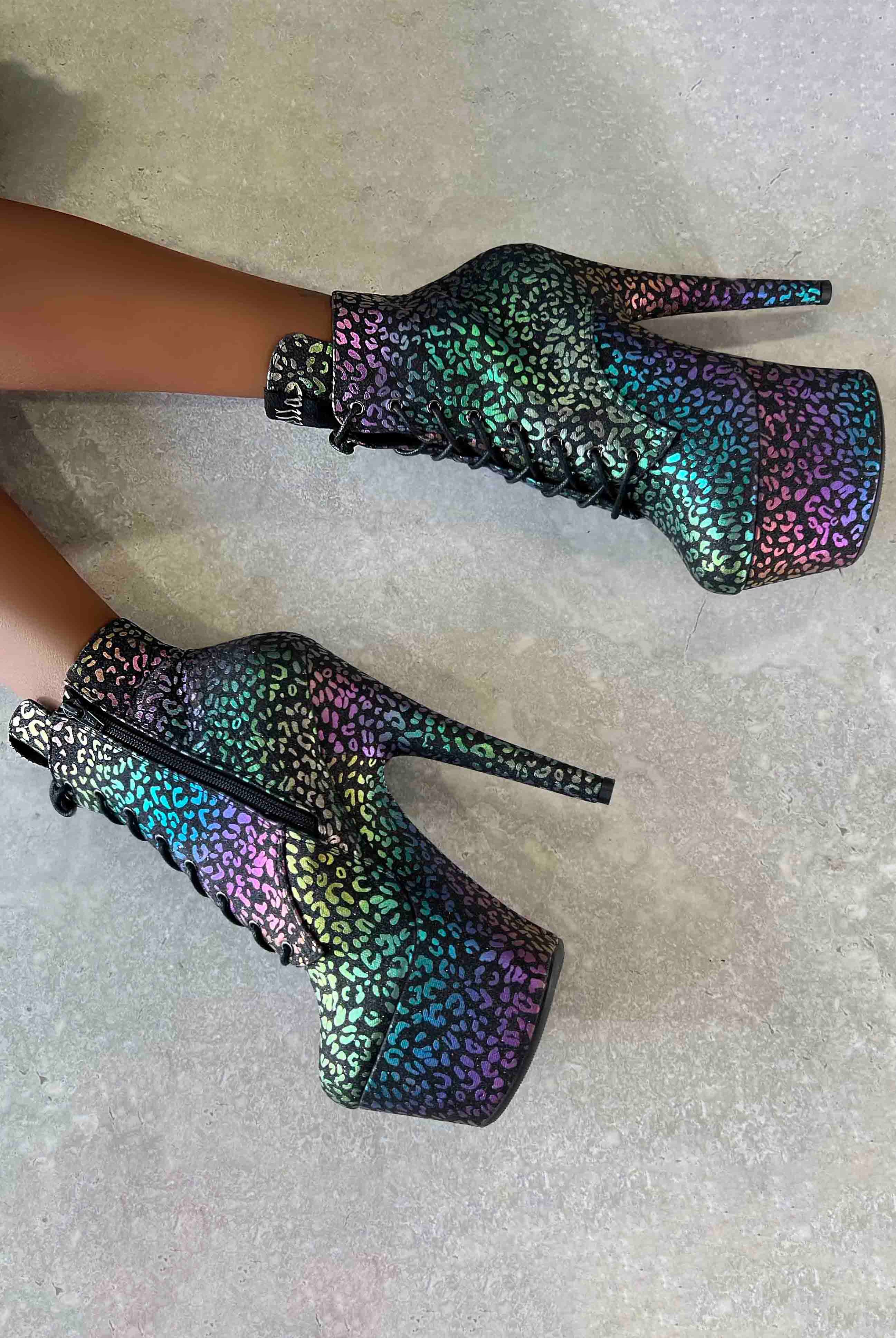 Hella Heels Moonlight Leopard 7inch High Ankle Boots - Iridescent