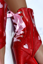 Hella Heels Cupids Chokehold Ribbon Corset 8inch Boots - Red