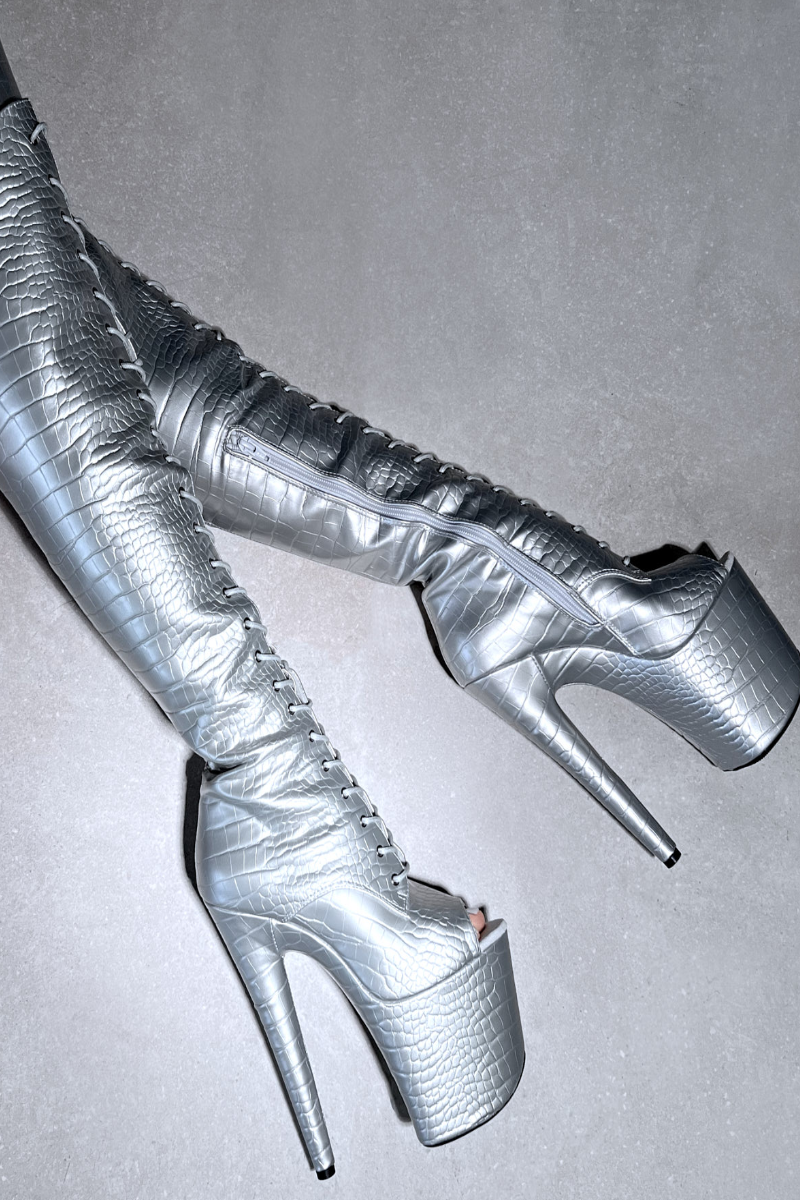 Hella Heels Jungle Open Toe Over The Knee 8inch Boots - Sliving
