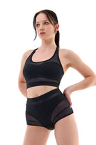 This racerback marvel boasts a square neckline and extra padding pocket, offering full bust coverage with a flirty twist. The mesh fabric and rough waistband keep you secure yet daring—because playing it safe isn't in your playbook.