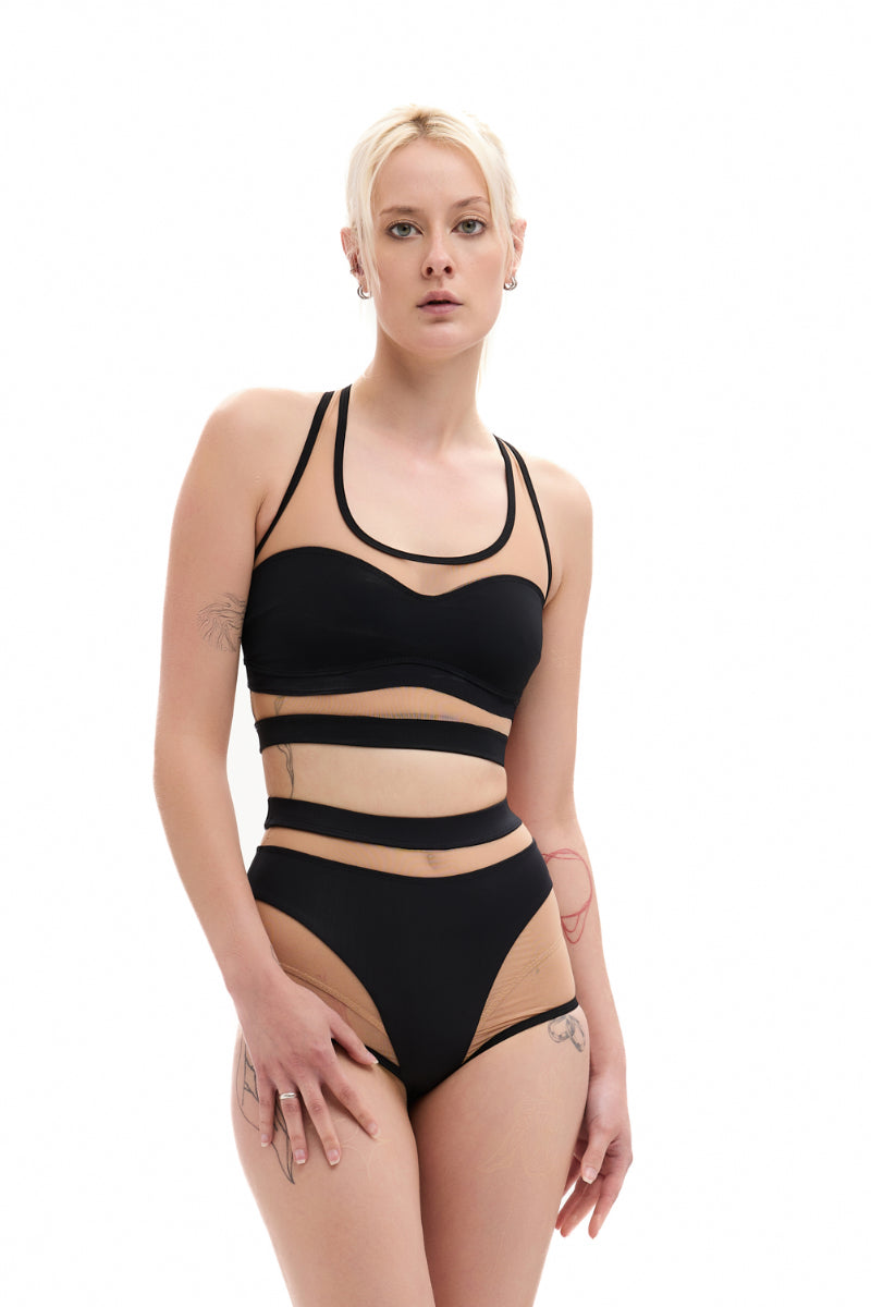 This racerback marvel boasts a square neckline and extra padding pocket, offering full bust coverage with a flirty twist. The mesh fabric and rough waistband keep you secure yet daring—because playing it safe isn't in your playbook.