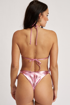 Get ready for lift-off. Part of Lunalae's Intergalactic collection, this metallic baby pink bikini top is your ticket to another dimension. The barely-there, fully adjustable triangle design has a high-shine finish that catches the light. Low support and removable padding for a custom fit. Itโs cosmic.