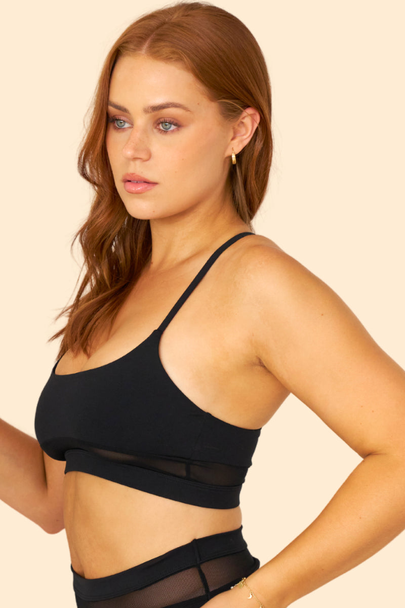 Lunalae Maeve Mesh Cut Out High Waist Bottoms - Black