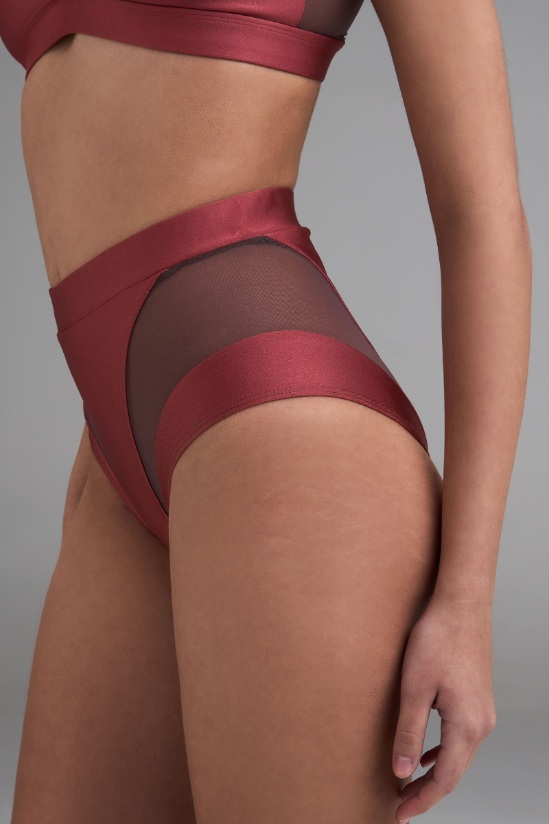 • Fully lined in plum | Mesh details | Medium coverage | High waisted |