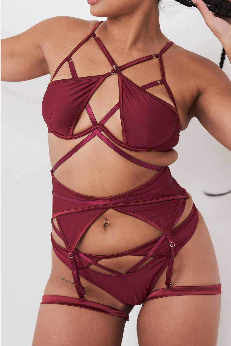 Lunalae Intimates Lauren Strappy Cut Out Adjustable Bra - Recycled Wine