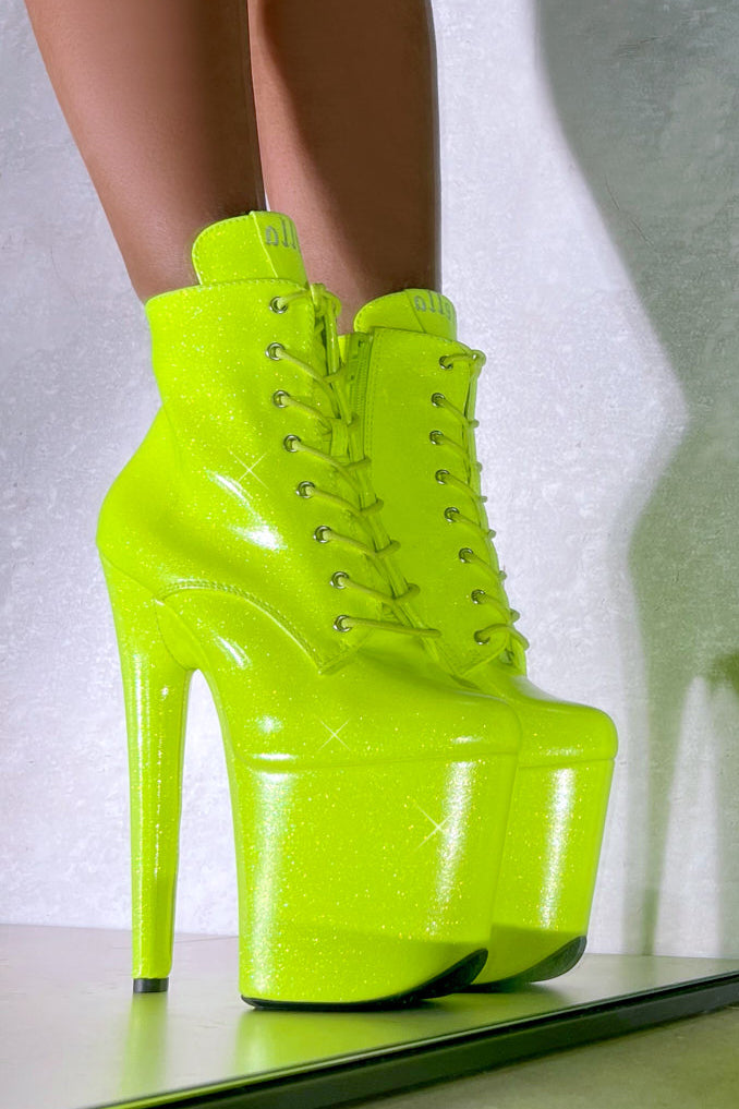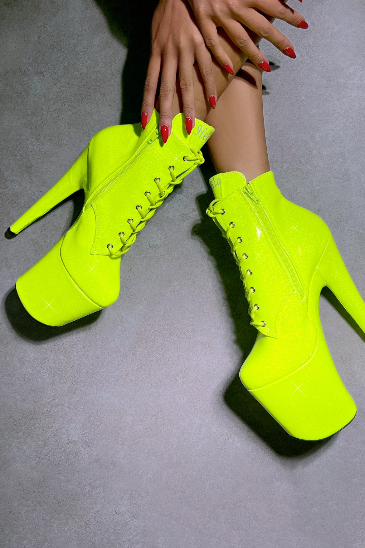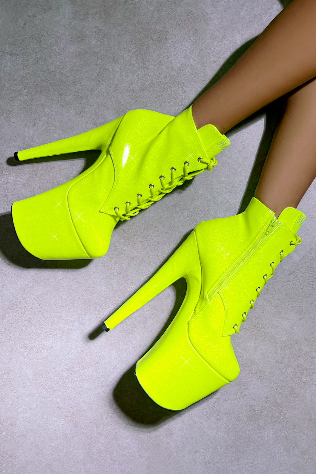 Hella Heels The Glitterati 8inch Low Ankle Boots - Citrus Yellow Burst