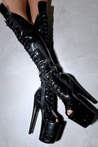 Hella Heels The Glitterati Open Toe Over The Knee 8inch Boots - Sin City