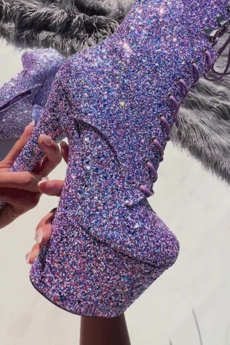 Hella Heels The Glitterati XTRA 7inch Boots - Confetti