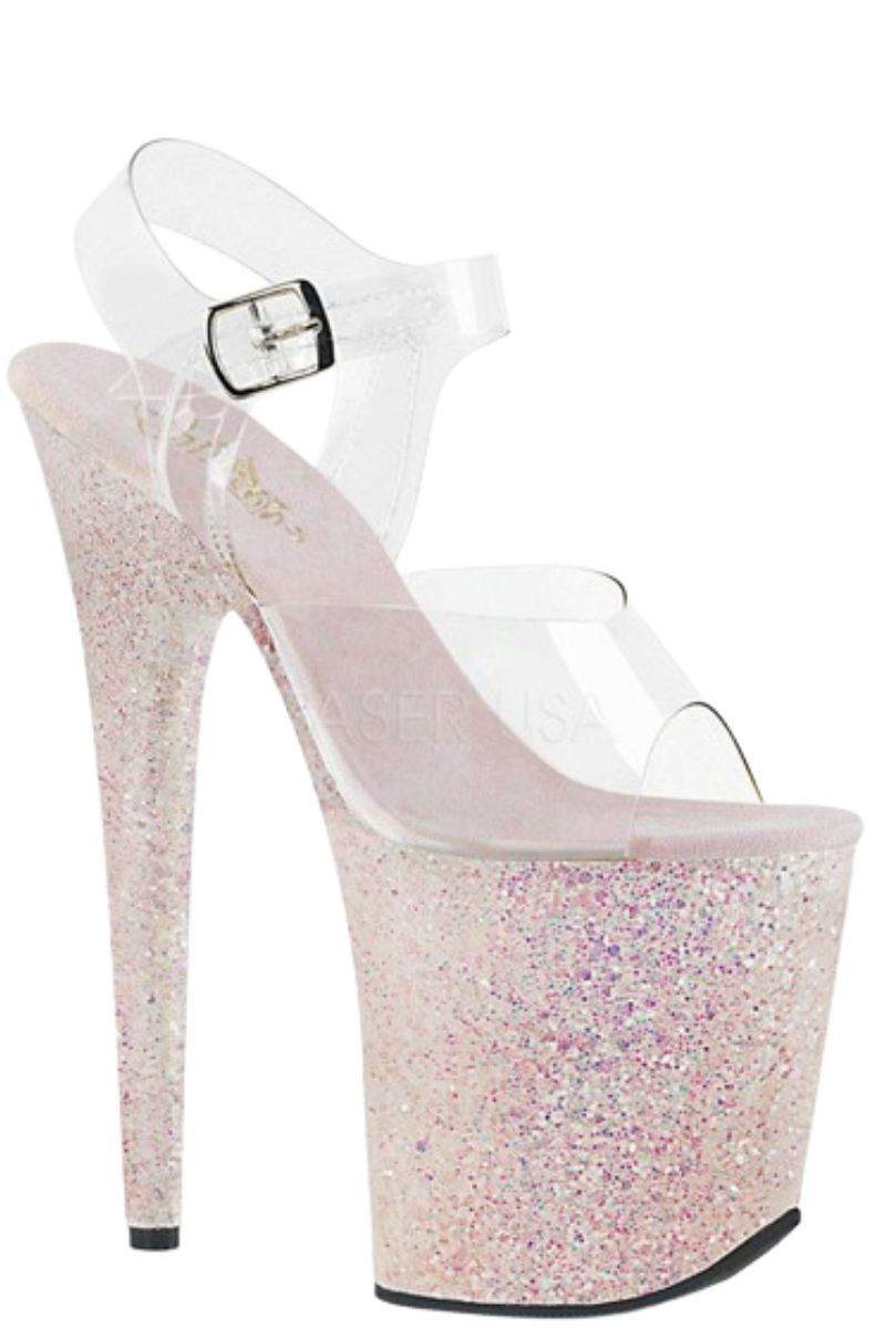 Be Unstoppable with Pleaser USA Flamingo-808LG: Step into your power and leave 'em starstruck! 🌟✨ With an audacious 8inch heel, sky-high 4inch platform, and mesmerizing iridescent glitter, these vegan Pleasers are your secret weapon to owning any room. Clear ankle straps seal the deal, offering support as you dazzle and dominate. #OwnTheRoom ✨💪