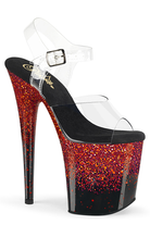 Dare to shimmer in the Pleaser USA Flamingo-808SS 8inch Pleasers - Black/Red Glitter; an 8-inch heel and 4-inch platform adorned with holographic and ombre glitter. These heels are your declaration of strength and sparkle on the dance floor.💃🤩