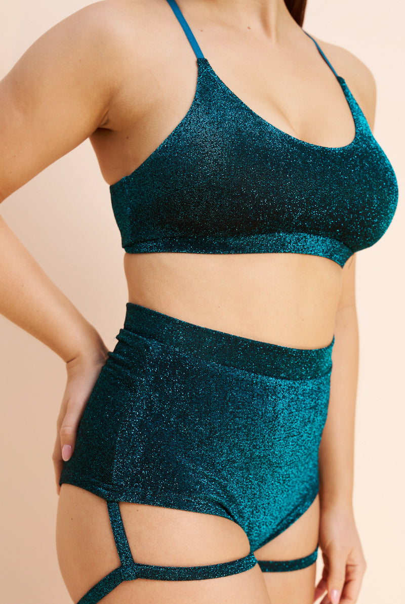 Lunalae Lure You High Waisted Garter Shorts - Ocean Shimmer