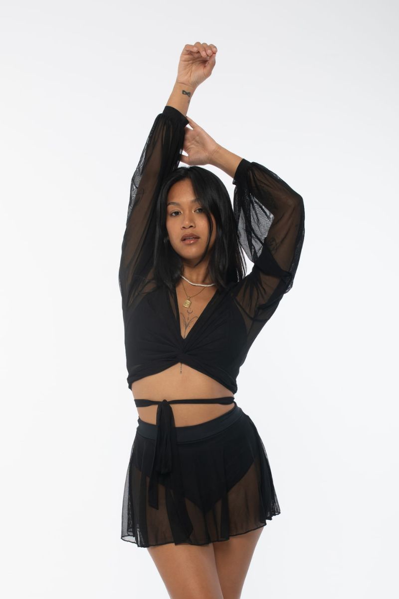 For the pole dancers who LOVE mesh, these bottoms are for you. Featuring built in shorts and a mesh skirt overlay, these bottoms will have you flowing straight in to your next choreo class.