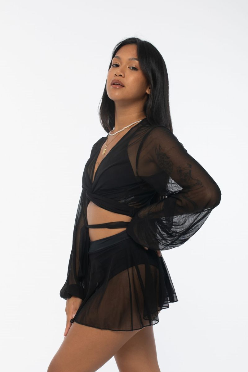 Styled with the REV ACTIV Mesh Wrap Blouse in Black!