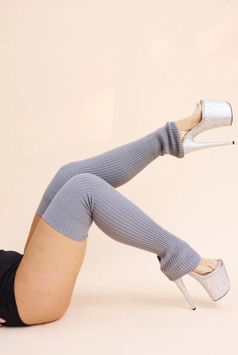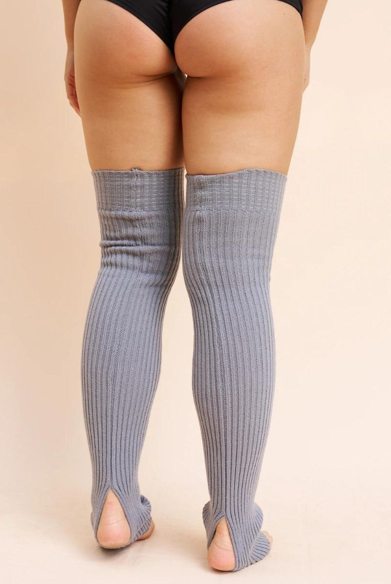 Rolling Cable Knit Thigh High Leg Warmers with Stirrups - Noir