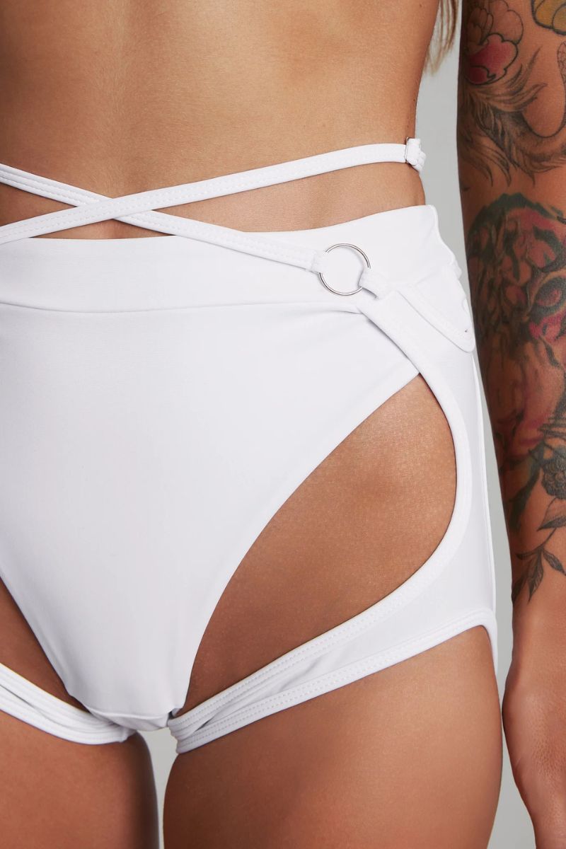 Can you handle the wild purity of the Harna Fantasy Bottoms - White? High-waisted with daring cut-outs and garters, they blend innocence and untamed power. The scrunch bum and silver hardware lure you in, leaving behind nothing but irresistible chaos. As white as an angel, but bold as hell with provocative cut-outs, they’re pure seduction with a wild edge.
