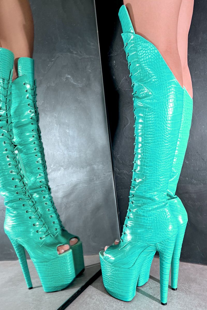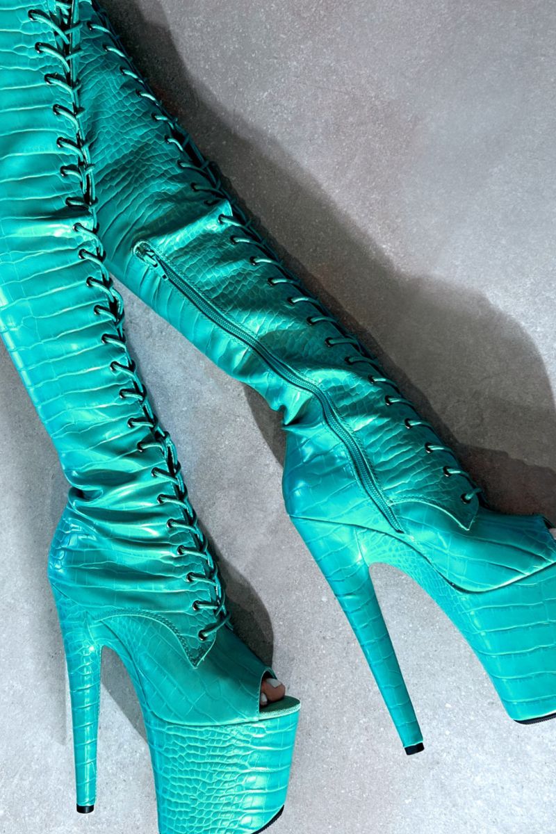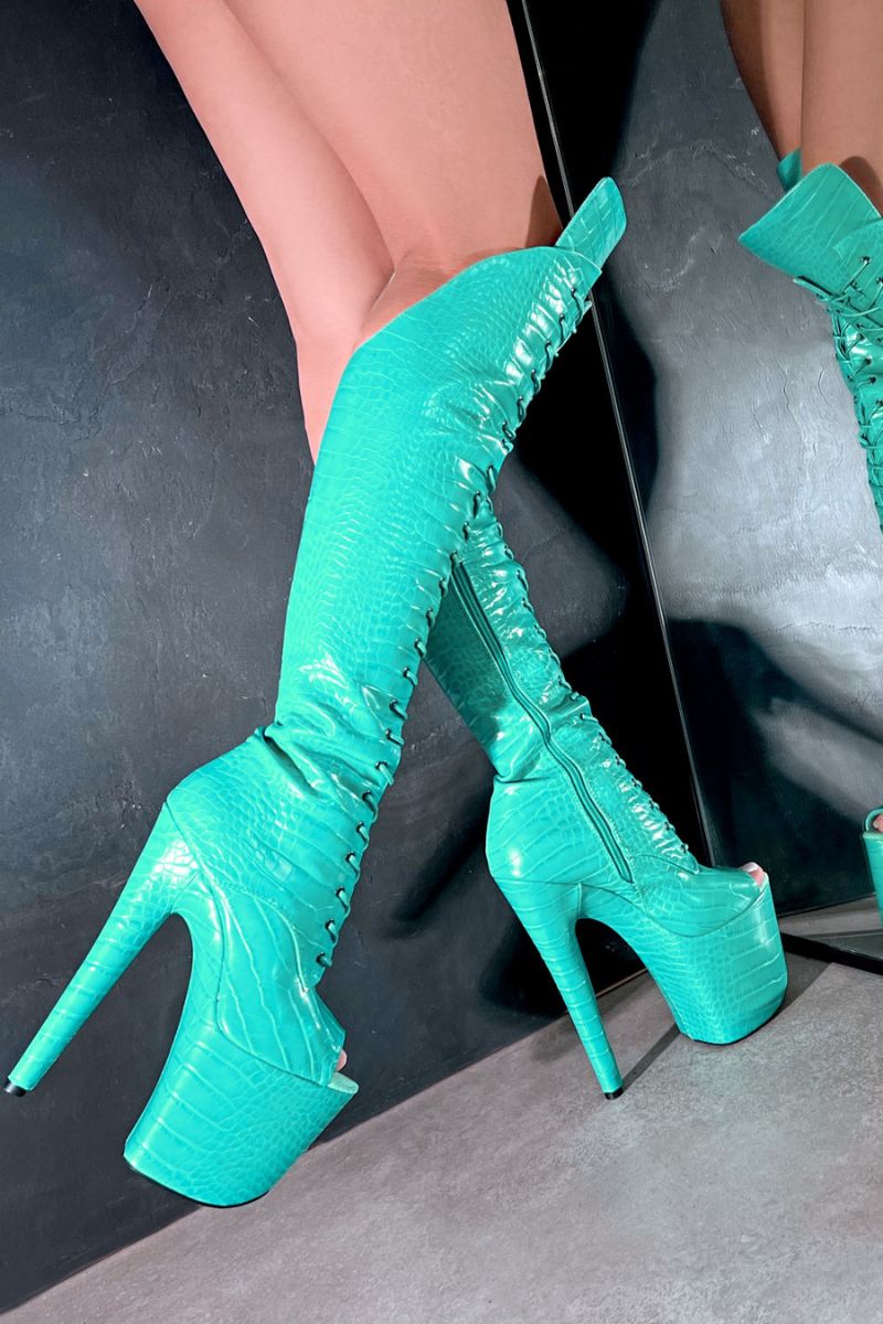 Hella Heels Jungle Open Toe Over The Knee 8inch Boots - Killing Eve