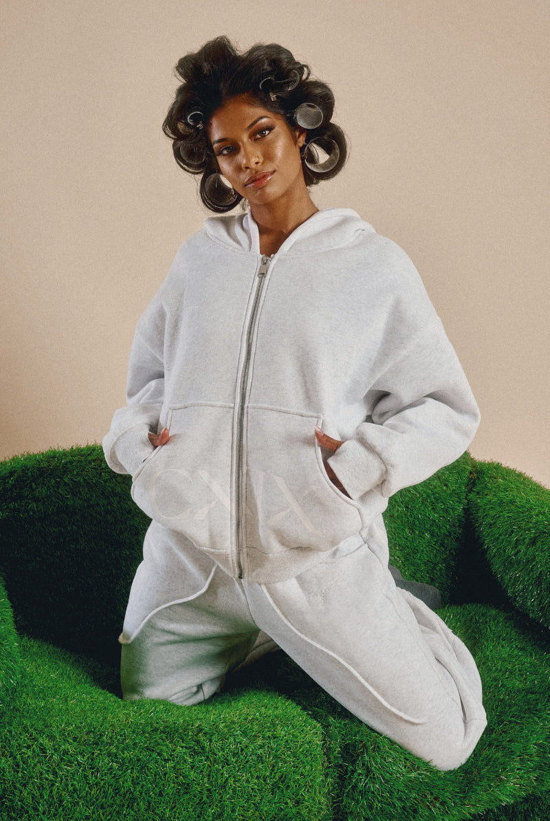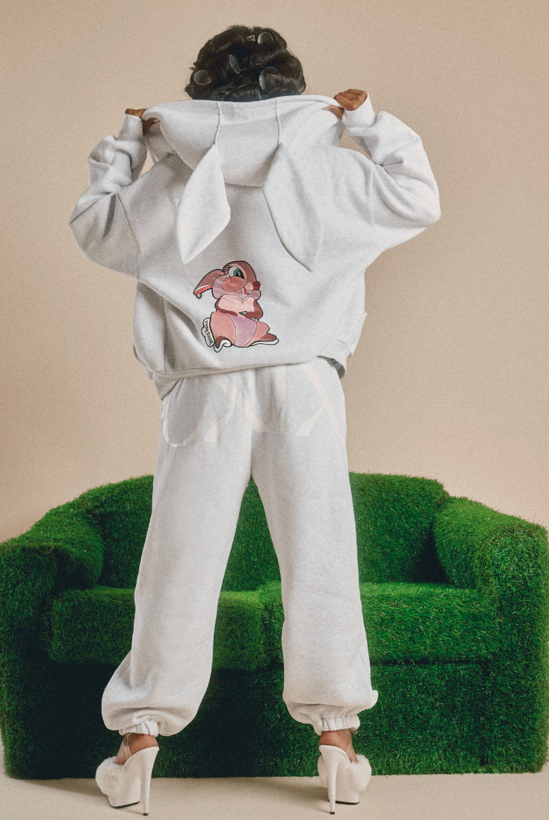 CXIX Creatures in the Club: Honey Bunz Zip Hoodie - Mist Grey/White
