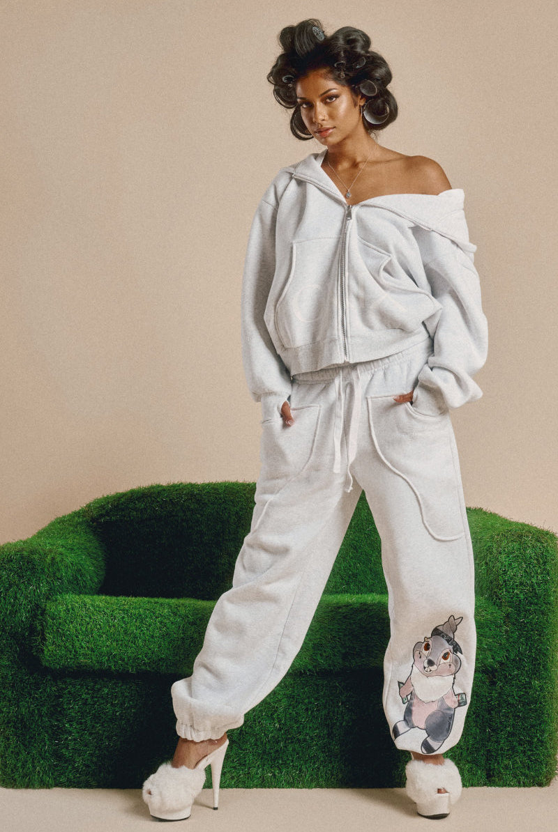 CXIX Creatures In The Club: Blessed Bunz Sweatpants - Mist Grey/White