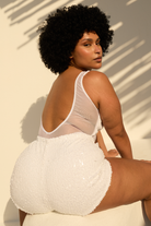 Ready to shine? These retro-cut shorts bring all the festive fire. Crafted from brilliant white sequin material, the high-waisted design and full-coverage fit let you move with total confidence. Serve some serious sparkle this party season and light up every room you enter.
