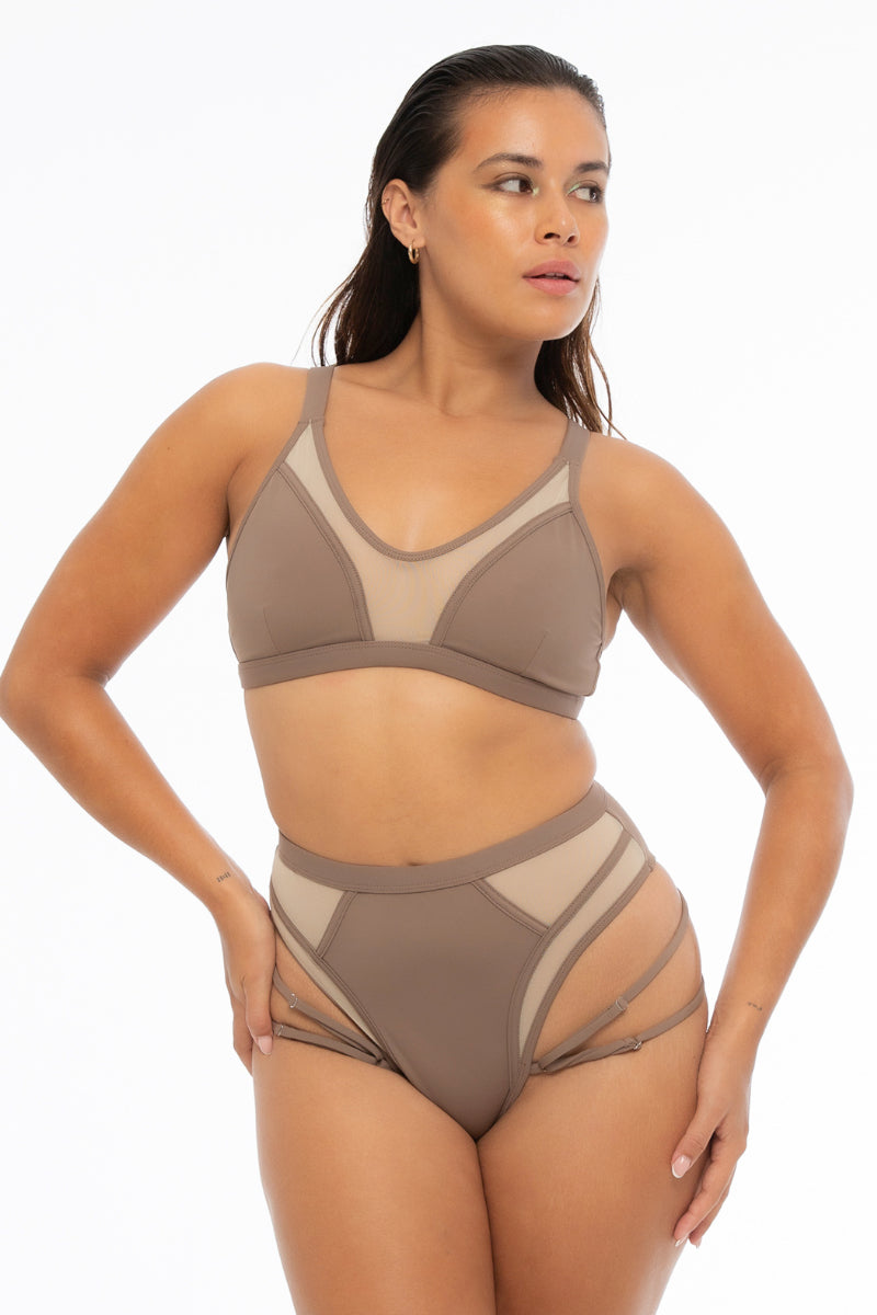 The epitome of chic and confidence in our Composure collection. These are the only strappy bottoms you'll need, featuring adjustable side straps for a customisable fit. Mesh accents add a hint of allure and femininity, while the cheeky back ensures you make a statement from every angle. With good frontal coverage and a flattering high waist design, these bottoms strike the perfect balance between comfort and sexiness.