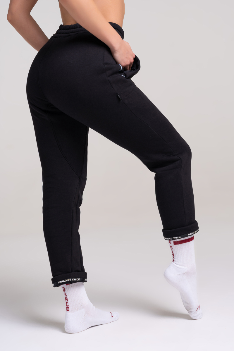 Own your off-pole vibe in these ultra-soft black sweatpants 🖤 A thick elasticated waistband securely hugs your waist, while signature Paradise Chick logos on the pockets and turnups serve pure attitude ✨ Comfort that never compromises your style. Grab yours and strut straight out of the studio 🔥