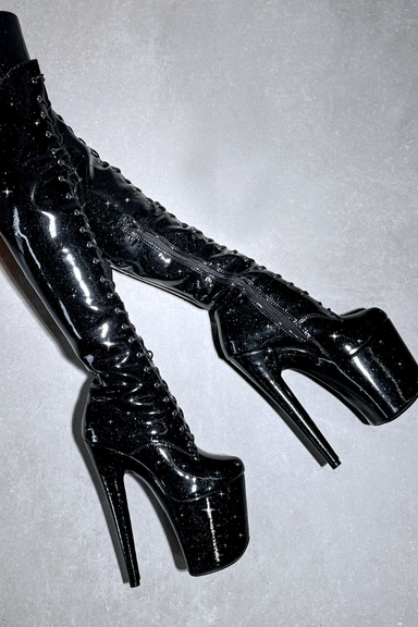 Hella Heels The Glitterati XTRA OHOT 8inch Boots - Black Caviar