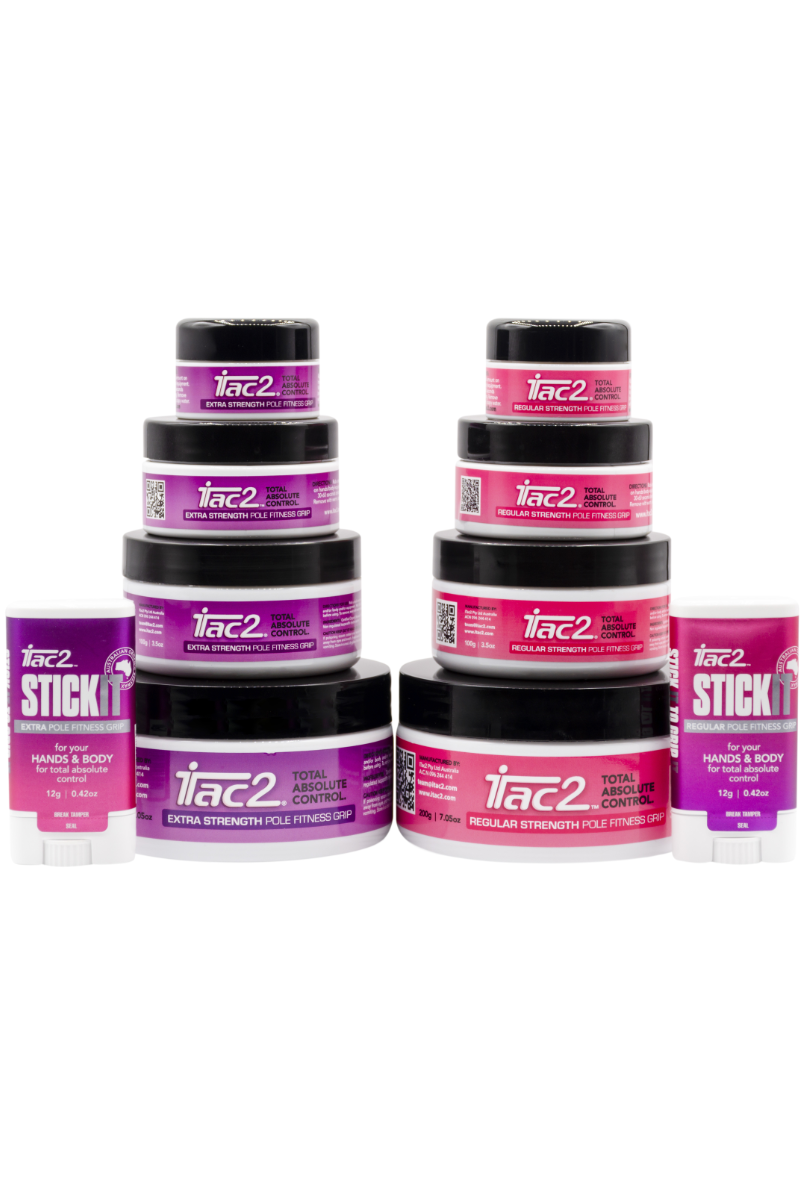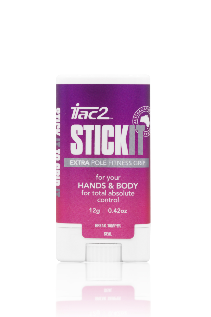 Specially formulated for Pole Dance, iTac2 is the perfect invisible grip. It adds moisture and stick to your skin to provide a strong, reliable grip surface for hands and body. It can be used on specific grip points or applied directly to the pole as well! The new STICK-IT is a twist-up stick which makes application even easier.