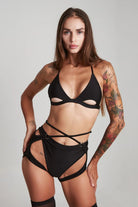Can you handle the boldness of the Fantasy Bottoms? High-waisted with daring cut-outs and garters, they blend innocence and untamed power. The scrunch bum and silver hardware lure you in, leaving behind nothing but irresistible chaos.