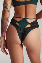 Get wild in the Harna Fierce Bottoms, drenched in lush, in vibrant green. High-waisted, and eye-catching cut-outs. The lightweight, breathable fabric feels like a second skin, while adjustable straps ensure a perfect and fierce fit, designed to accentuate every curve. Removable garter straps add a touch of versatility.