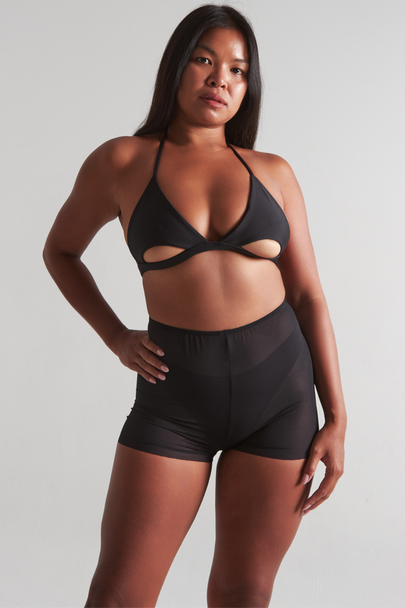 Designed to fit like a second skin, these high-waisted, all-black mesh shorts are perfect for making a statement. Lightweight, breathable, and moisture-wicking, they’ll keep you cool and confident through every spin, trick, and climb.