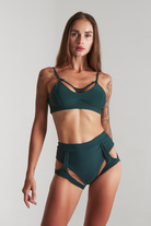 Precious gem, killer look 🍑. These high-waisted shorts in a stunning emerald green offer a second-skin fit and a cheeky cut for ultimate confidence. Crafted from durable, 4-way stretch fabric that moves with you. The non-removable garters with silver hardware perfectly frame your best asset.
