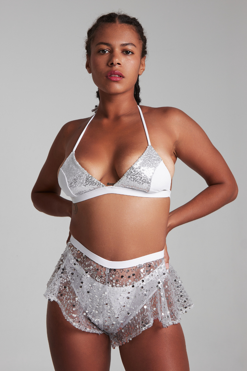 Float effortlessly with a high waist, shimmering sequins, and breathable sheer fabric, they combine delicate design with dynamic movement. Offering fuller coverage and a free-flowing fit, they’re perfect for stealing the spotlight with every spin and sway.🤍✨