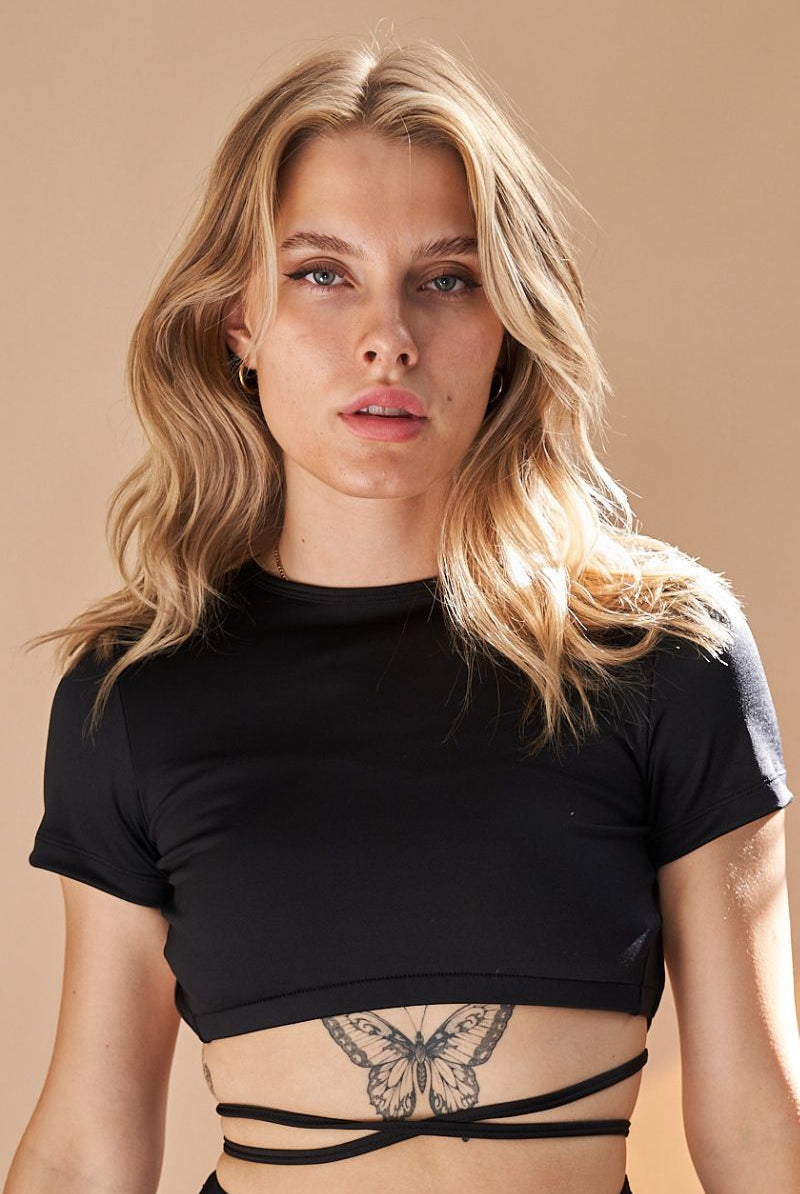 Lunalae Millie Backless Tie Short Sleeve Top - Recycled Black