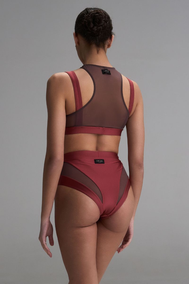 These high-waisted beauties in rich, dark burgundy are designed to flatter and command attention. The bold black mesh cutouts add a seductive edge, like whispers of shadows long forgotten, reminiscent of a tale from Greek mythology. Step into your power and own the stage—just like Echidna you are a force to be reckoned with.