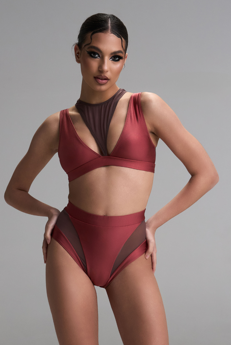 Lunalae Loretta Mesh Cut Out High Waisted Bottoms - Satin Magenta