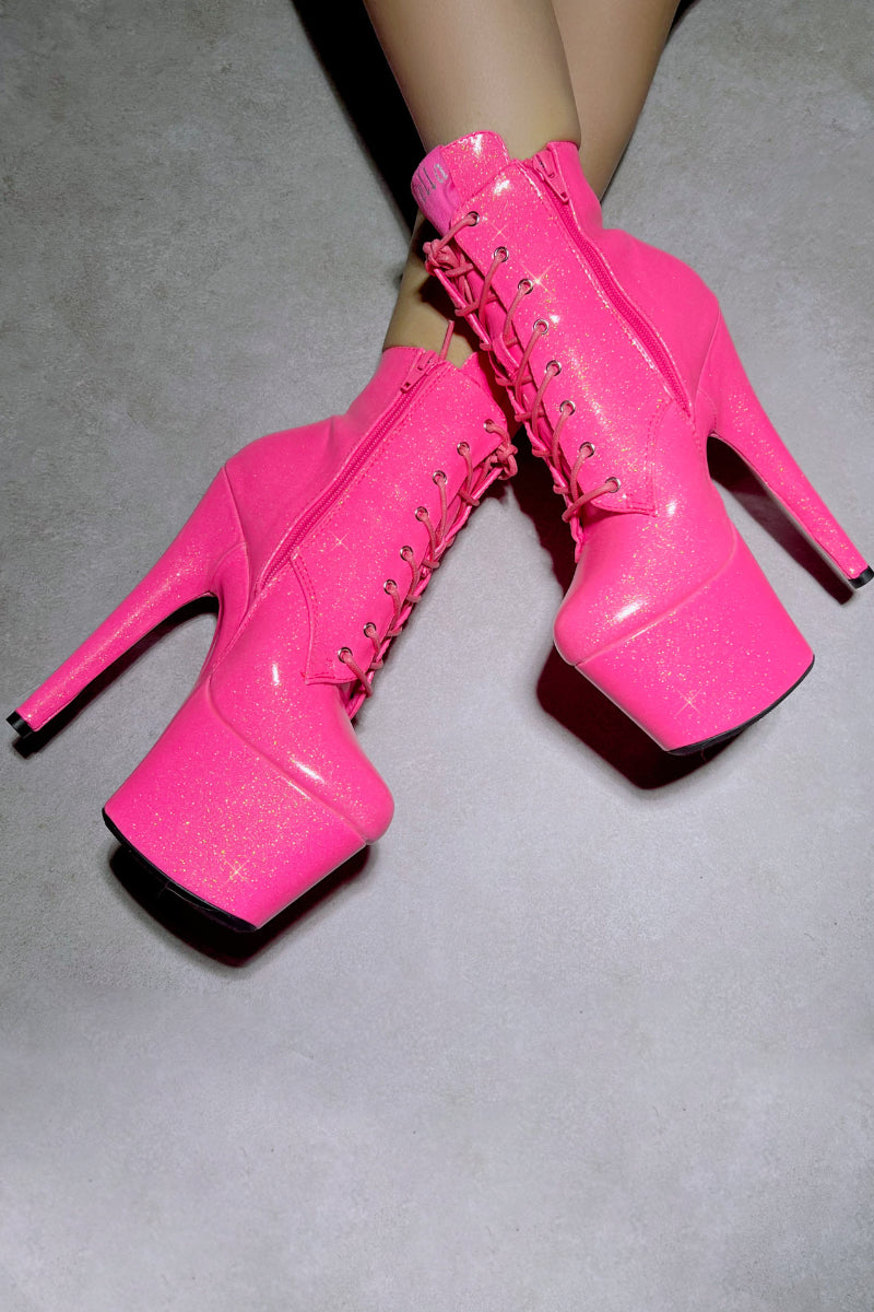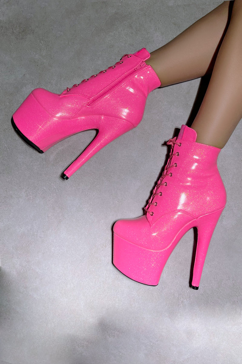 Hella Heels The Glitterati 7inch Low Ankle Boots - Juicy Pink Burst