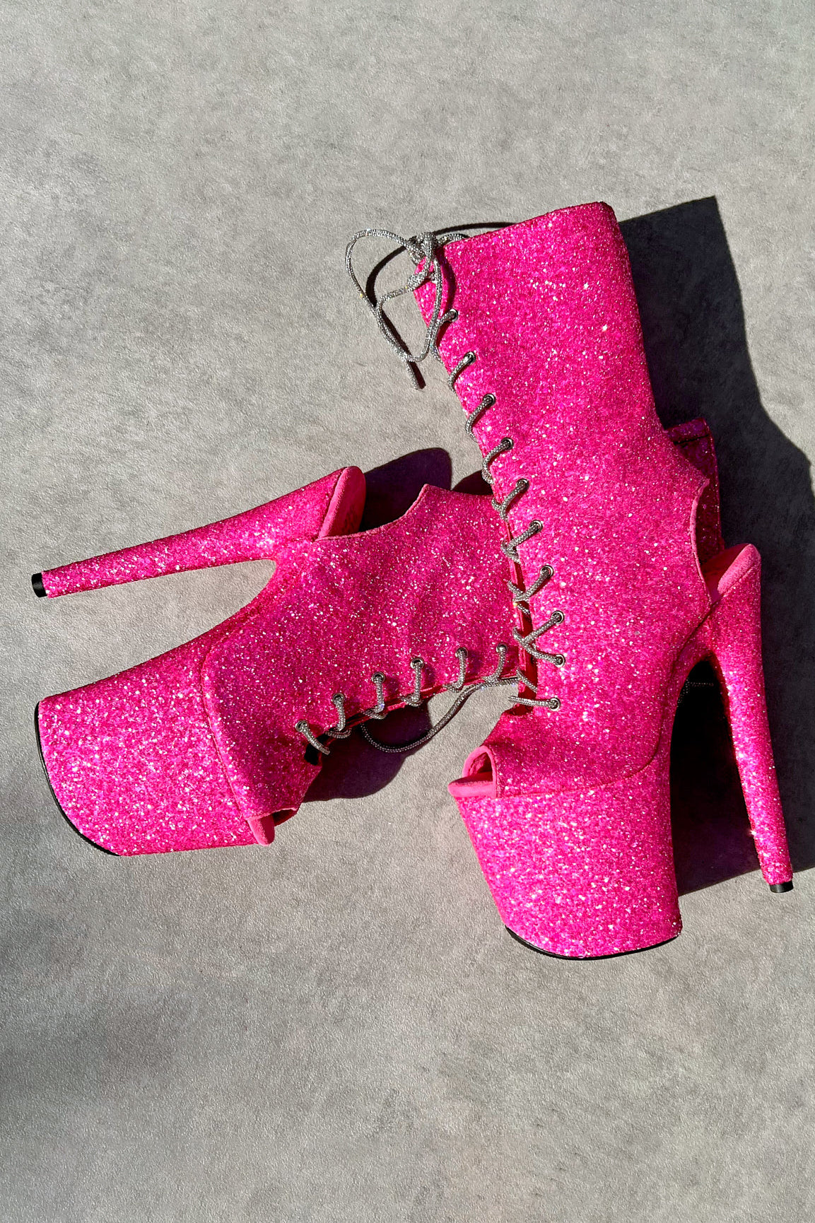 Hella Heels The Glitterati XTRA 8inch Boots - Lovergirl Pink