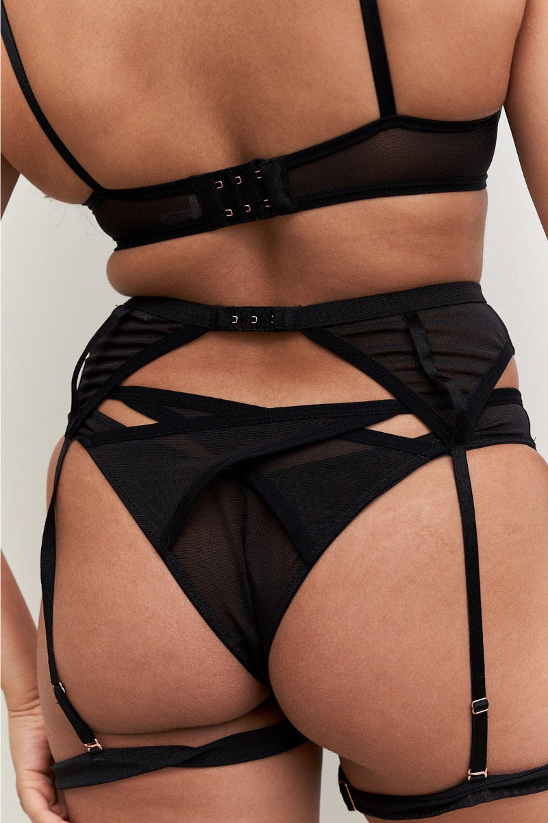 Lunalae Intimates Emily Mesh Cut Out Low Waist Bottoms - Recycled Black