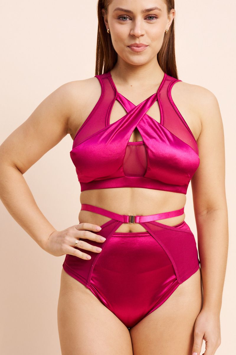 Styled here with the Loretta Mesh Cut Out High Waisted Bottoms - Satin Magenta