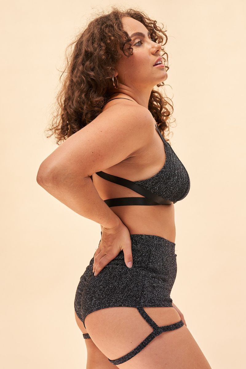 Unleash your inner star with Lunalae's Lure You High Waisted Garter Shorts! Sexy meets comfort in these sleek, Y2K strappy bottoms. With a tantalizing garter detail, figure-flattering scrunch bum design, and a dazzling crystal glitter finish - get ready to own the pole dancing stage like never before!