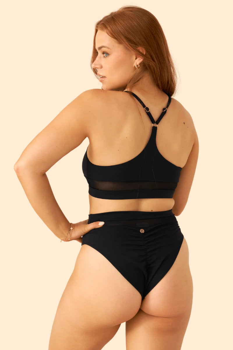 Lunalae Maeve Mesh Cut Out High Waist Bottoms - Black