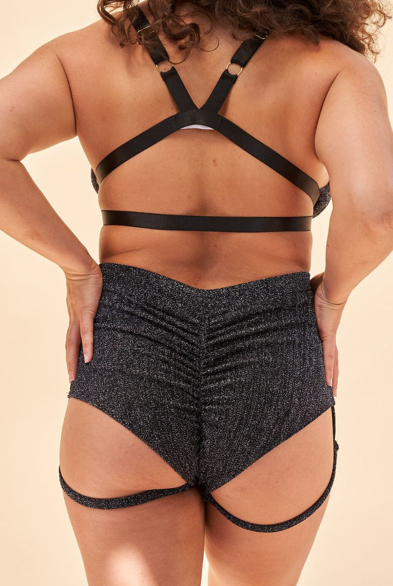 Lunalae Lure You High Waisted Garter Shorts - Crystal Black