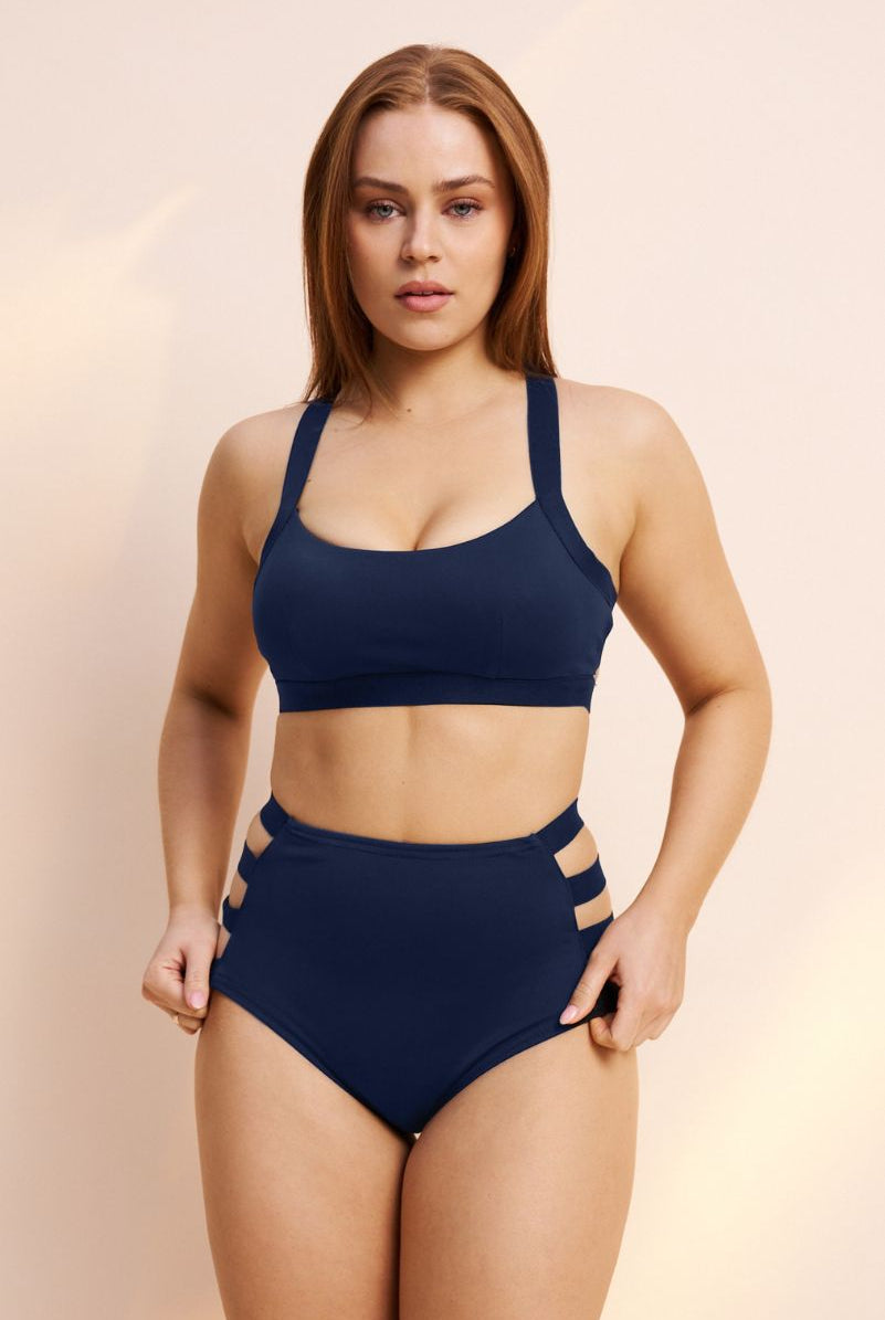 Lunalae Loretta Cut Out High Waisted Bottoms - Recycled Navy