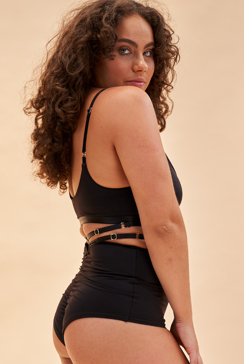 Lunalae Willow Cross Over High Waist Bottoms - Recycled Black
