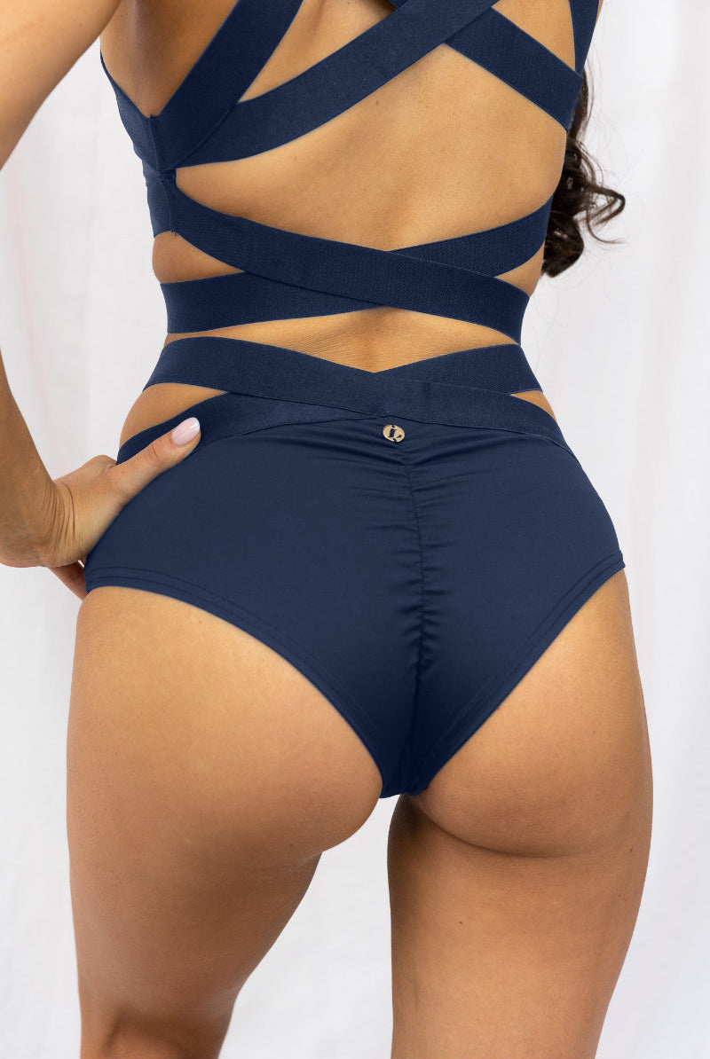 Lunalae Lure You High Waisted Garter Shorts - Crystal Blue