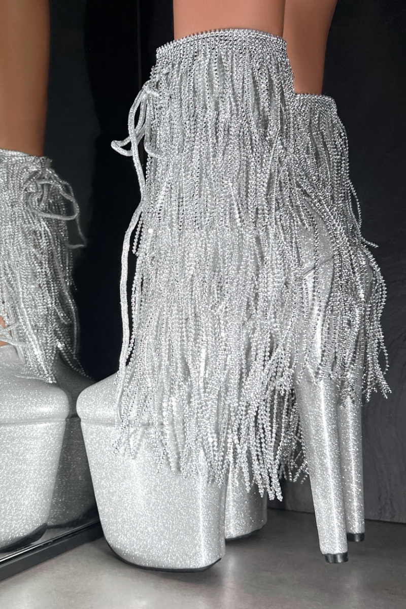 Silver fringe cascades down every angle, giving you that shimmy, swing, and $lay with every step
