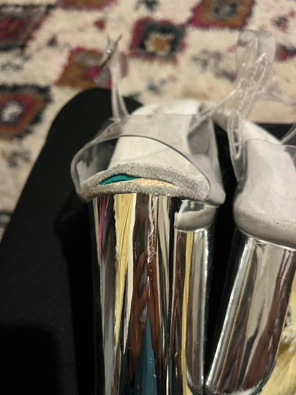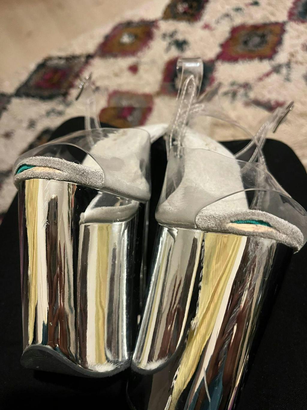 • 4 inch platform | Clear plastic ankle strap | Chrome plated base